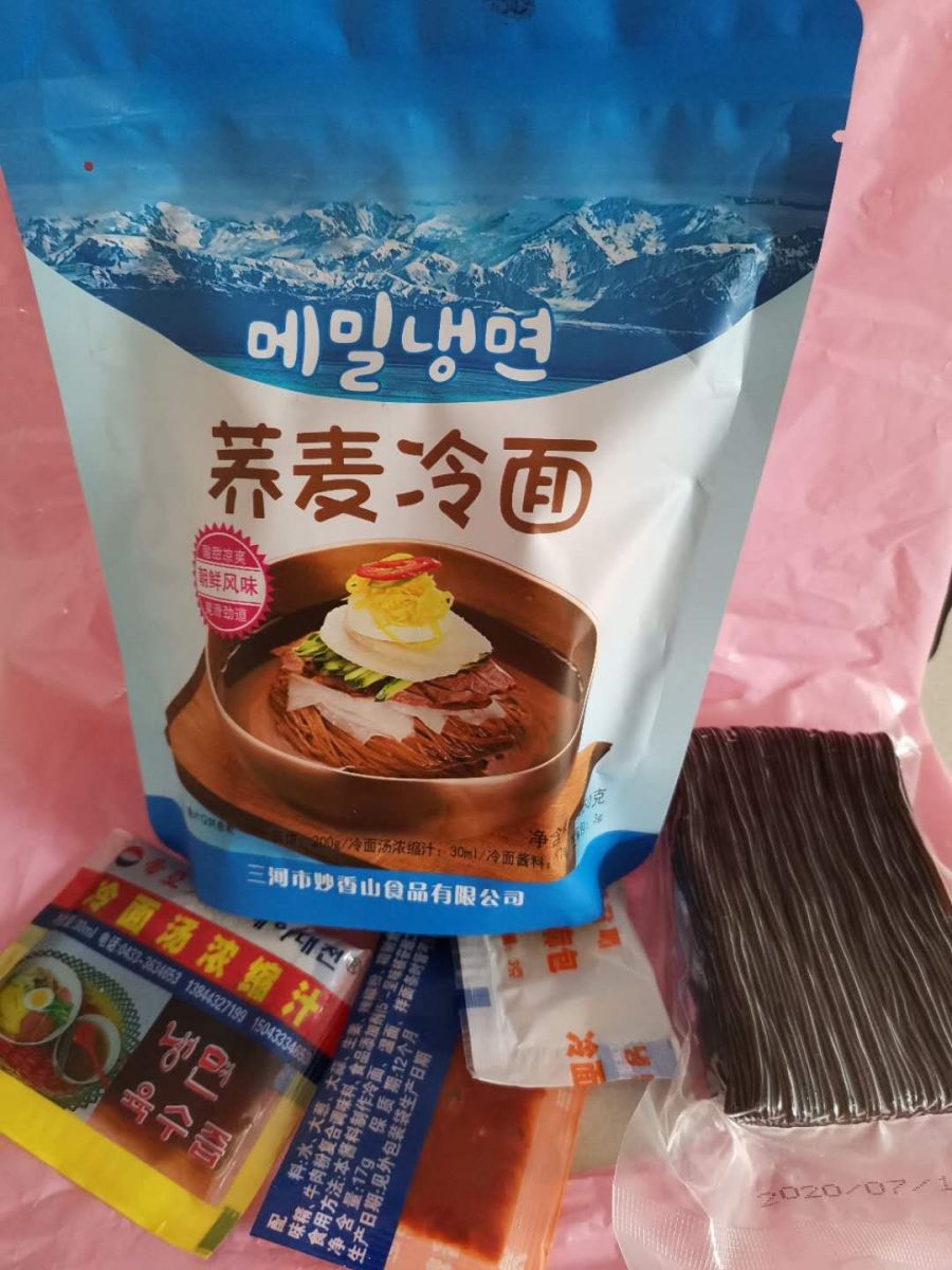 蕎麥冷面屬于機(jī)壓面條,蕎麥冷面是小麥粉添加淀粉、蕎麥粉、食用鹽、食品添加劑(碳酸鈉),加水經(jīng)過(guò)和面、機(jī)器軋制、晾置、真空包裝而成的濕面制品。蕎麥冷面經(jīng)浸泡、煮熟、過(guò)涼后,再去冷水伴牛肉片、辣椒、雞蛋、泡菜、梨或蘋(píng)果片、醬醋、香油等佐料,加入燉牛骨湯或淹蘿卜泡菜湯等即成。冷面入口后,柔韌耐嚼,涼爽清淡,湯湯水水,滑順潤(rùn)喉,而其中的辣、咸伴以酸甜能立刻勾出口水,再配嚼冷面菜(韓國(guó)泡菜,辣白菜,牛肉,黃瓜絲,煮雞蛋,香菜),令人食欲大增。冷面經(jīng)濟(jì)實(shí)惠,普通百姓都能接受。